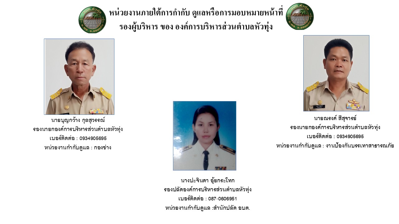 หน่วยงานภายใต้การกํากับ ดูแลหรือการมอบหมายหน้าที่ รองผู้บริหาร ของ องค์การบริหารส่วนตำบลหัวทุ่ง